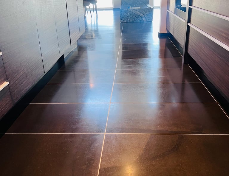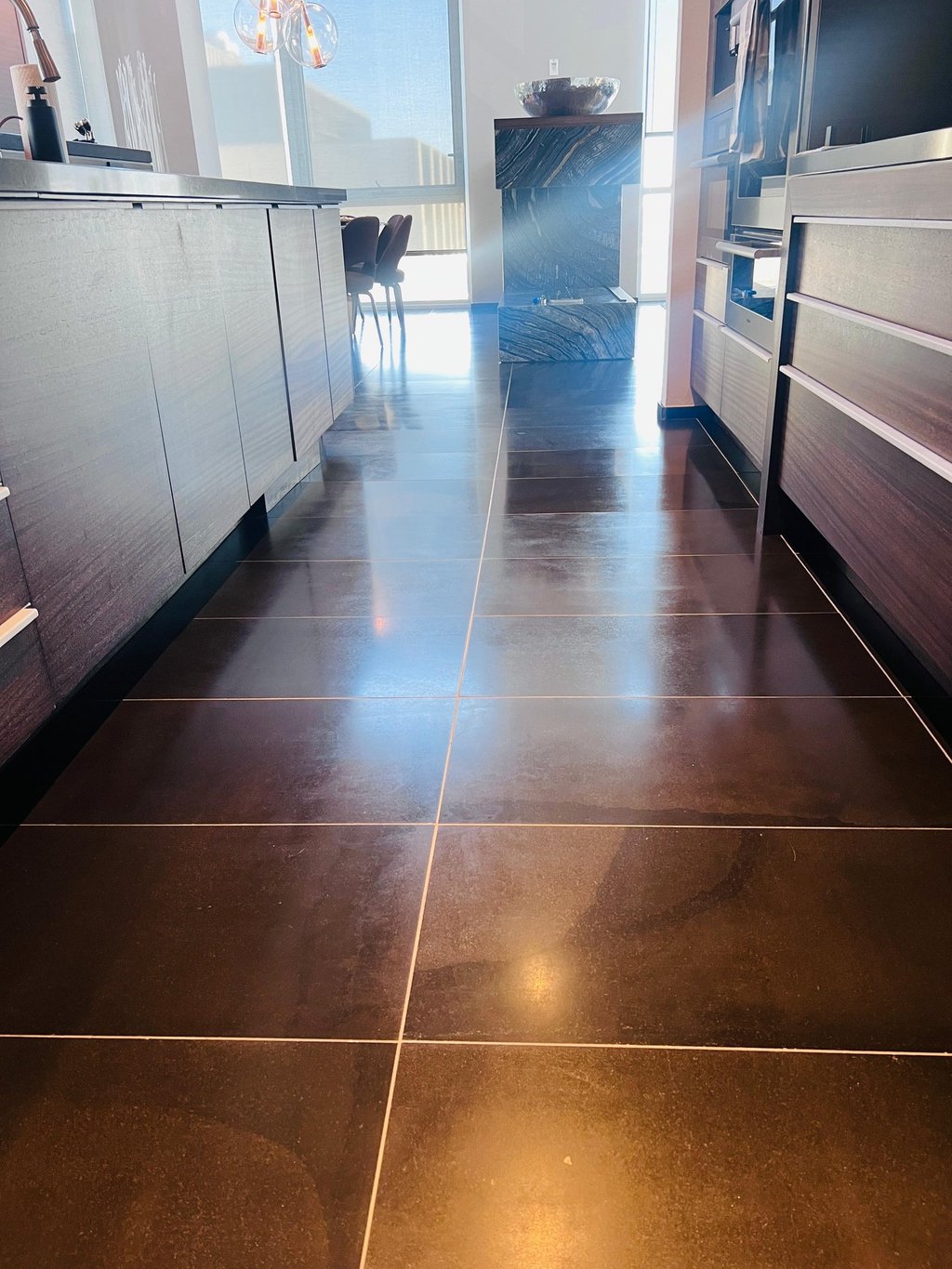 Strip waxing completed for a clean, smooth, and refreshed floor finish.